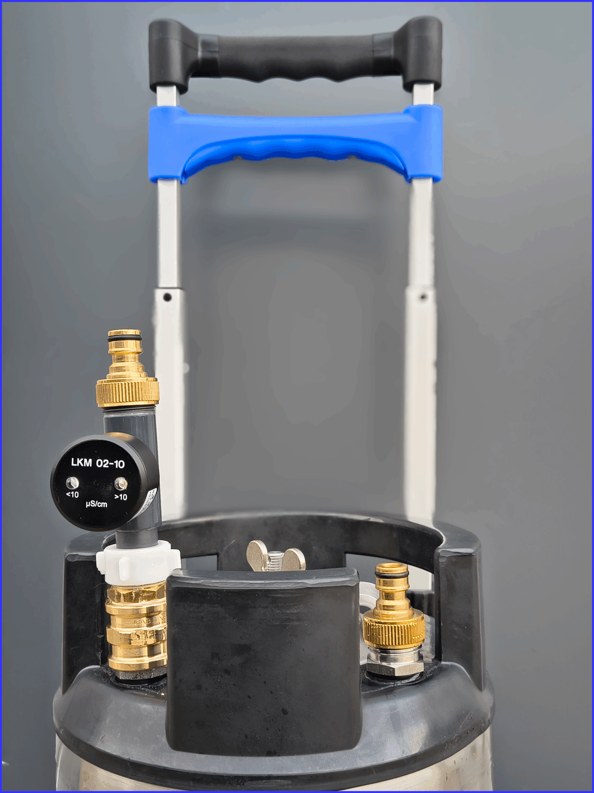 Kurz: Überall dort, wo Trailer/Van zu viel und Eimer & Leiter zu wenig sind. Die Einsatzfelder decken sich mit denen klassischer Reinwassersysteme für Glas, PV und Fassaden – nur eben in klein und mobil.